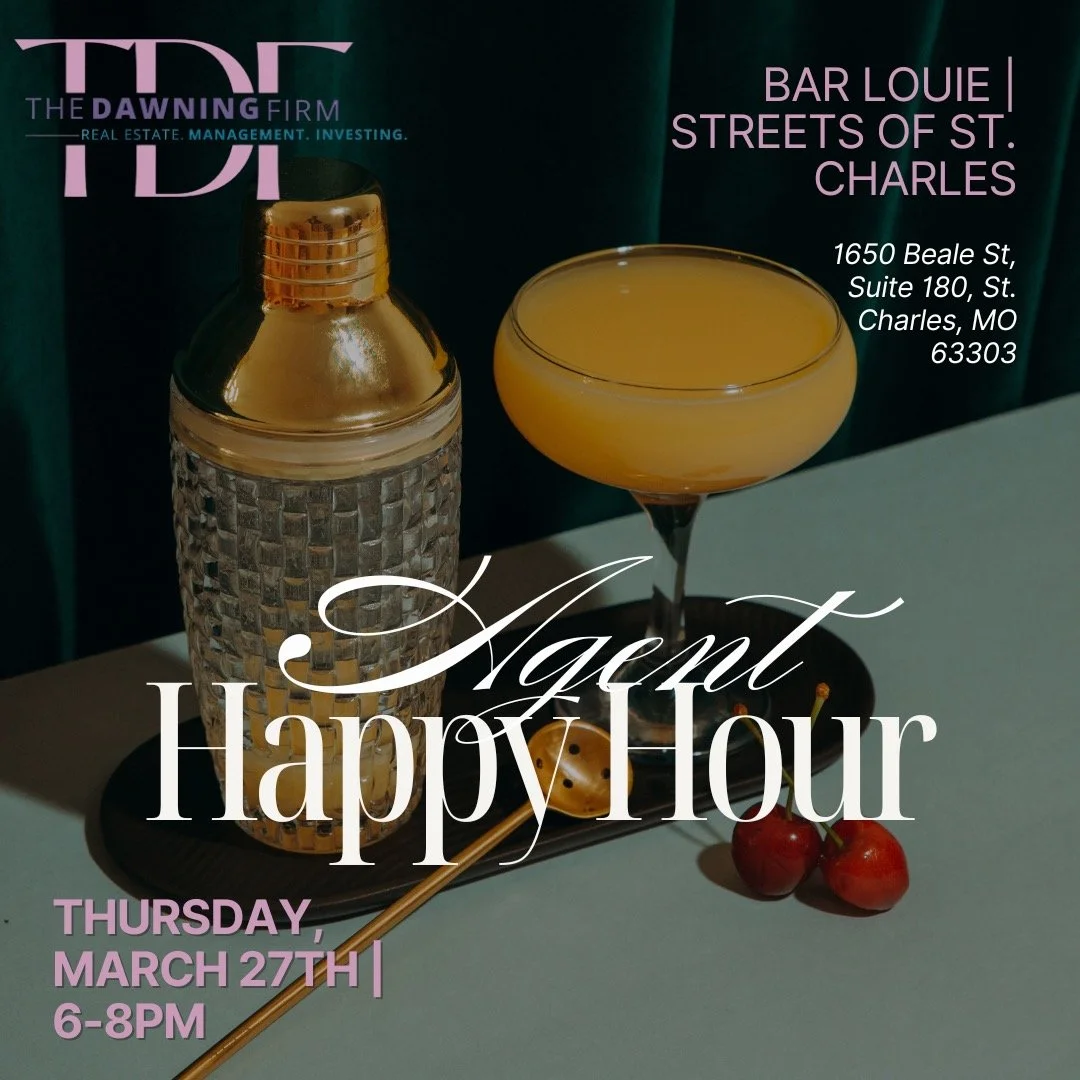 Agent Happy Hour! Where? 1650 Beale St, Suite 180, St. Charles, MO 63303 When? Thursday, March 27th from 6-8pm Why? To celebrate new beginnings & learn more about The Dawning Firm. RSVP Now before March 24th! Name * First Name Last Name Email * Phone * (###) ### #### RSVP * Yes - I'd love to attend! No - I won't be able to make this one. Thank you!